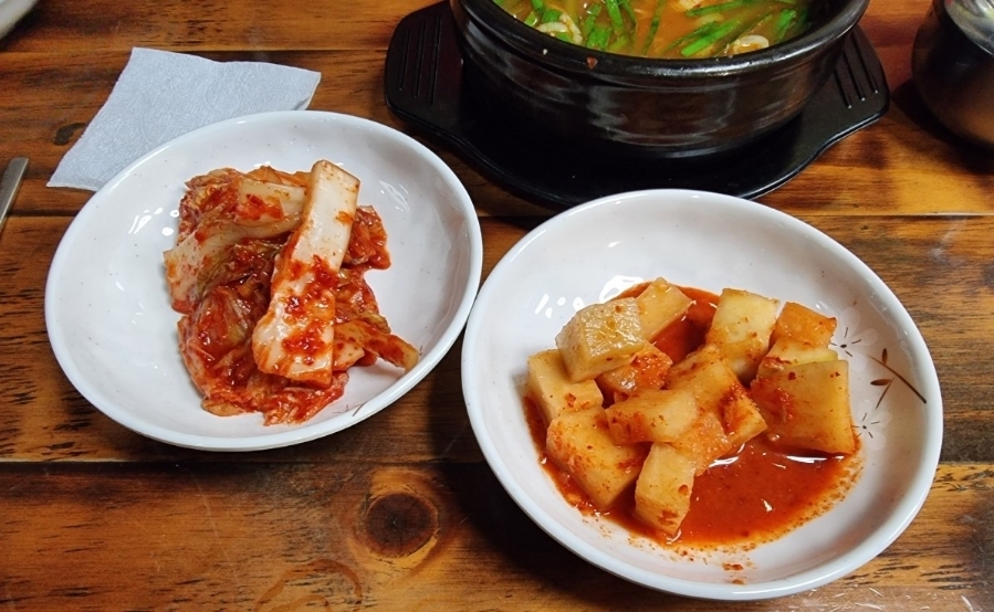 깍두기랑,김치,부추,이렇게. 기본반찬으로제공됩니다.