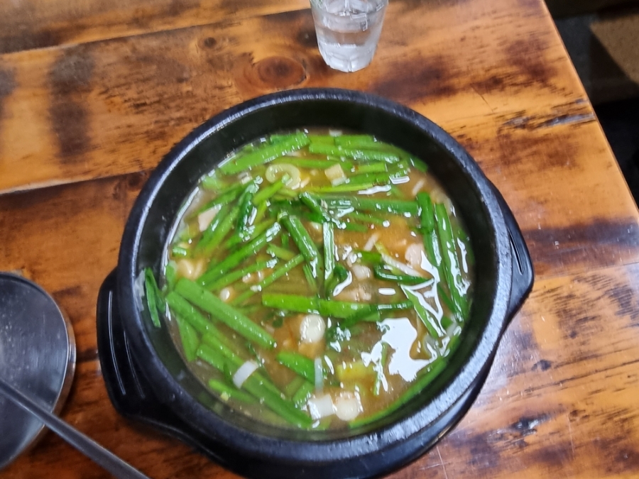 국물이 뜨끈 뜨끈할때 부추를 먼저 넣어줘야 합니다.